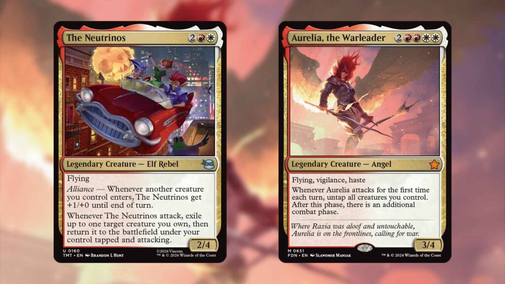 So long as your opponents can’t block down your creatures, The Neutrinos and Aurelia, the Warleader can deal infinite damage by creating infinite combats. Simply order your attack triggers so The Neutrinos resolves first, exiling Aurelia and returning it tapped and attacking. Aurelia’s ability will then untap your creatures, setting up another combat. Since Aurelia was flickered, every combat will be the first time that she attacks.