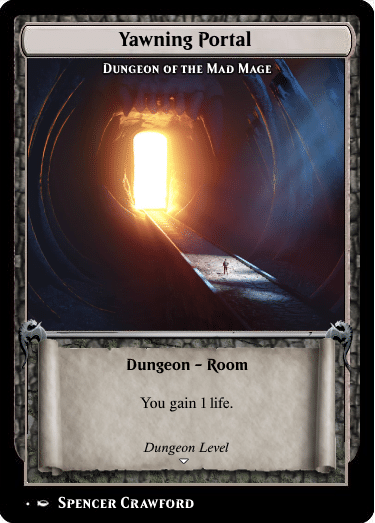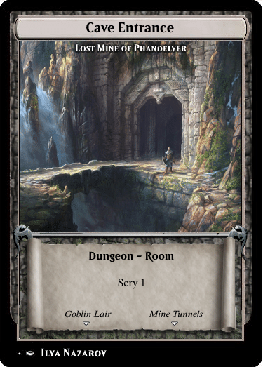 Dungeons are a new type of card in Forgotten Realms. We haven’t really had a card like this in the past. That being said, these cards that we have aren’t the only ways that we can interact with the dungeon mechanic. Wizards states that any way to accurately represent the dungeon is totally fine, as long as they don’t take up an obnoxious amount of space, and are accurately depicting each room.