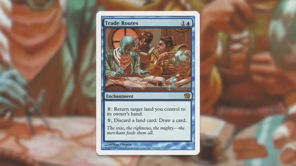 At first glance, Trade Routes may look like nothing special. While the enchantment is efficient, most decks aren’t actively looking to bounce their own lands. Similarly, the second ability isn’t always easy to use unless you’ve reached the late game and are actively looking to turn excess lands into fresh cards.