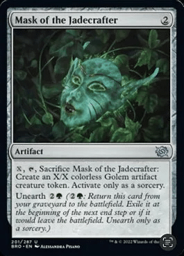 Ultimately, Mask of the Jadecrafter is not the most powerful MTG card in the world. If someone wants to go out of their way to find a misprinted copy of it, especially if it isn’t their native language, I would them play it. While The Brothers’ War prerelease this weekend may be a bit of a different story, there’s no harm in creating some fun from what may otherwise be a mistake.