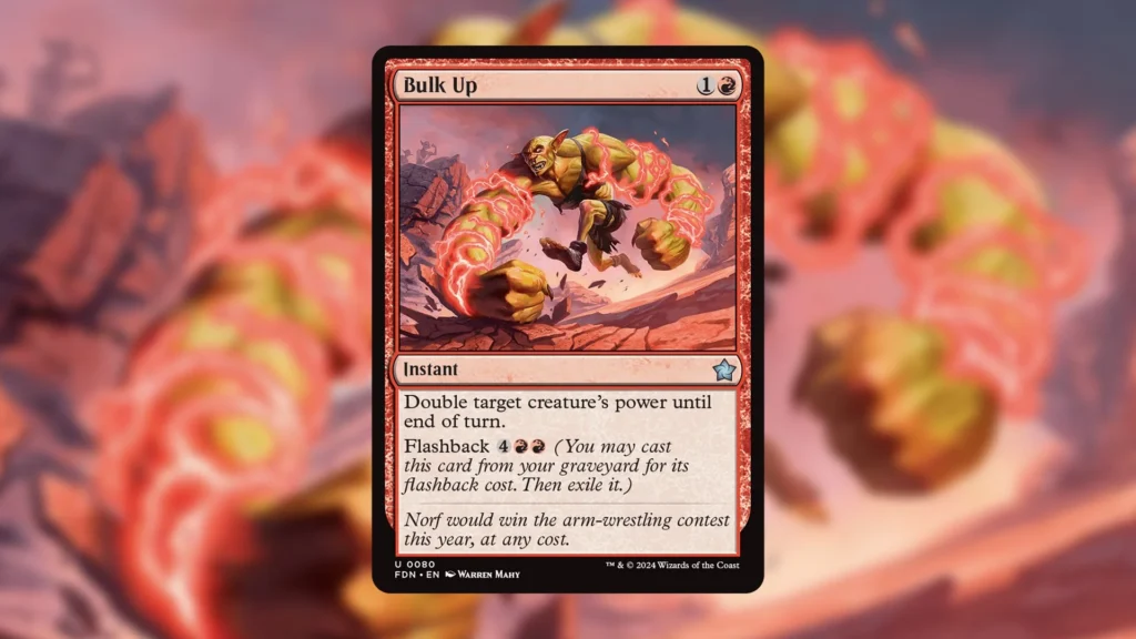 Bulk Up may seem like a fun-of experiment for this deck, but MacIssac has been running it for a full month now. It gives your already buffed creatures an insane amount of reach, occasionally closing the game out without even attacking. It’s reminiscent of the Modern decks playing Assault Strobe alongside Slickshot Show-Off as a way to race Nadu, Winged Wisdom decks when they were still legal.