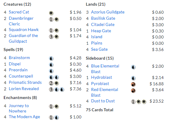 This increase in both overall format speed and polarity can also warp the metagame in a relatively unhealthy way. Take a look at the sideboard of this Gates deck from MTGGoldfish that made top 8 of a recent Magic Online Pauper Challenge. The entire sideboard is made up of blue and red Blast effects and Affinity hate. This type of approach is not uncommon. Almost every deck that has access to blue mana runs at least 5 blast effects to help avoid getting run over by quick Monastery Swiftspear draws from mono-red.