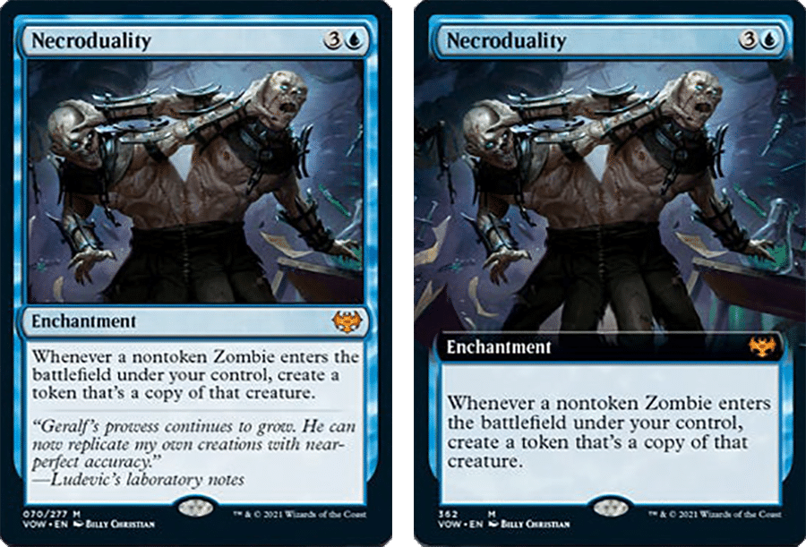 Either way, Necroduality will be an expensive card due to its expected usage in Commander and in particular, for the Zombie tribe. However, the enchantment does open different deckbuilding options and is not limited to a strategy that is ‘Zombie matters’. So, if you happen to open one in a Crimson Vow Set, Draft, or Collector Booster, it’s one to keep a hold of for future usage.