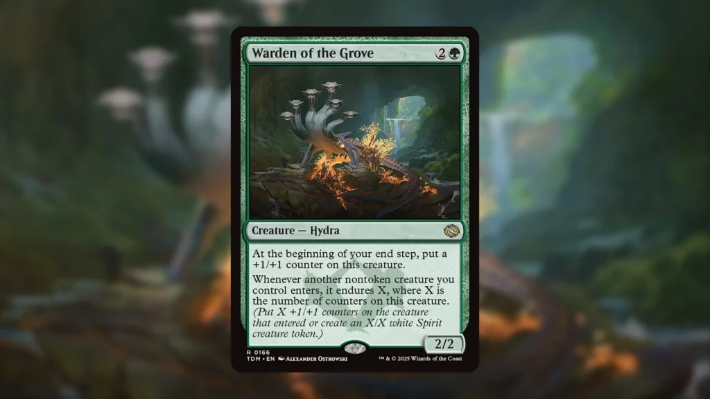 Notably, Warden of the Grove gets pretty silly alongside Elspeth, Storm Slayer from Tarkir: Dragonstorm. Any Endure effects will create twice as many tokens from having her in play. Alternatively, Elspeth’s zero ability can scale the effectiveness of Warden of the Grove’s Endure ability even faster than normal.
