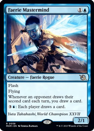Faerie Mastermind is equipped to take advantage of this. If each player is trying to draw two cards per turn on average, Faerie Mastermind will net you three cards each rotation of the table.