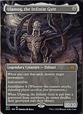 Emrakul has been spoiled via another Baldur’s Gate opening. The addition of Emrakul, the Aeons Torn, at this point, seems like more of a reference to having all three together than a reprint that is generally needed. Because this card is banned in Commander, there isn’t much demand for it. Taking an extra turn and completing blowing one player out with annihilator six is too much… or is it? There are much more powerful effects currently in Commander. As a result of power creep, I could see Emrakul being unbanned. Maybe this reprint is a hint?