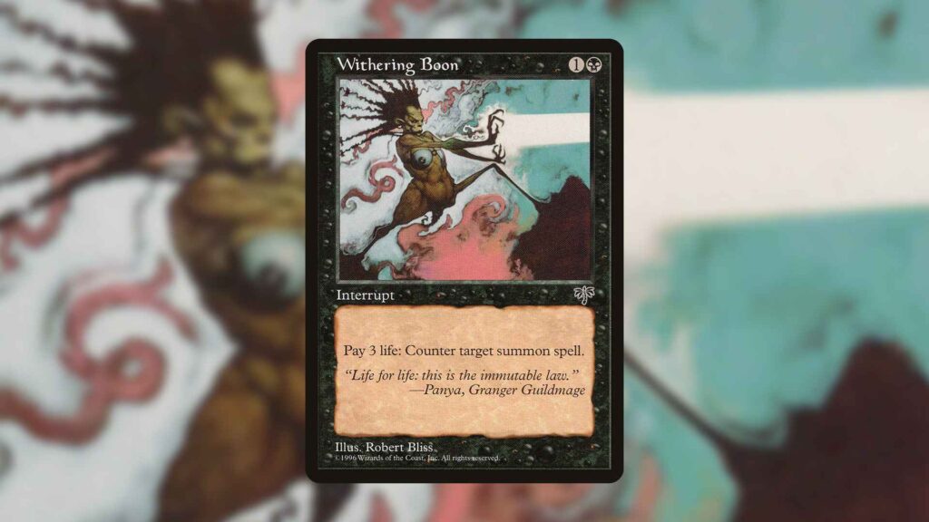 Outside of these synergistic homes, Withering Boon is efficient enough that it could be a strong addition to any black Commander deck that couldn’t otherwise play countermagic.