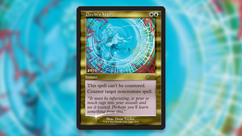 The four cards available for players to collect this time around are Dovin’s Veto, Vito, Thorn of the Dusk Rose, Deadly Dispute and Urza, Prince of Kroog. Notably, this copy of Dovin’s Veto offers never-before-seen artwork and flavor text!