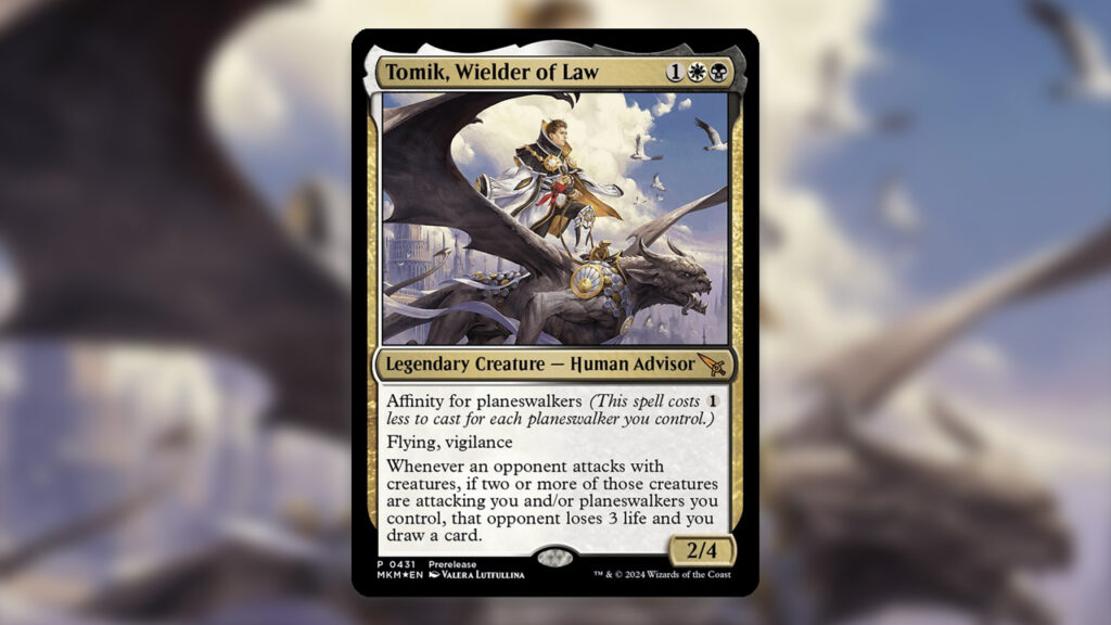 In Commander, however, Tomik’s Affinity for Planeswalkers becomes a lot more interesting. Reducing Tomik’s casting cost to two is a relevant upside, but the Affinity can really show its teeth in Commander. Thanks to Affinity reducing Command Tax, Tomik can keep its casting cost relatively low even if it’s sent packing to the Command Zone. With Tomik’s ability discouraging players from pointing their creatures at your Planeswalkers, an interesting Orzhov Superfriends pillowfort strategy can be constructed.