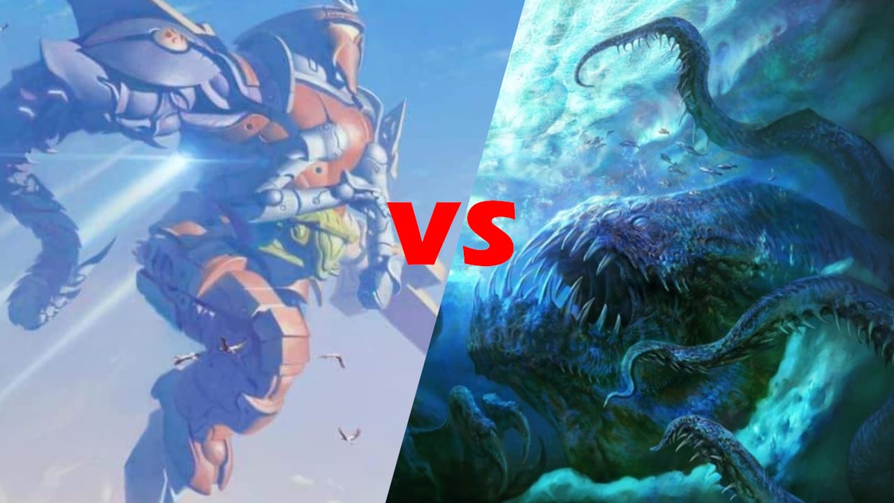But if any of them were to spar with the flying Mechtitan, they’d be obliterated in an instant, both in-game and in a hypothetical fantasy fight. Mechtitan has more stats, more keywords, and wields a sword the size of a skyscraper!