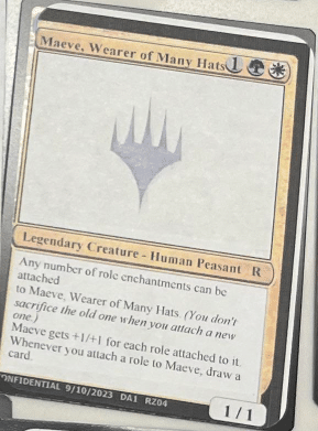 Going even further with Roles, Maeve, Wearer of Many Hats lets you suit itself up with as many Roles as you want. Normally, you need to sacrifice the Role currently on a Creature in order to put a new one on, but not this time. This again seems like a reasonable design that likely could have even been featured in Wilds of Eldraine in the first place.