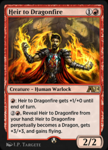 Of all the Alchemy: Eldraine cards revealed so far, this one is the most intriguing to me. A two mana 2/2 with Firebreathing doesn’t do a whole lot, but you can get rewarded big time for running these cards in multiples. Your two mana 2/2 can turn into a 5/5 Flying Dragon for an additional three mana as long as you have an extra Heir to Dragonfire in your hand. This makes a curve of playing a one drop into a Heir to Dragonfire, upgrading it into a 5/5 Dragon that can attack rather exciting.