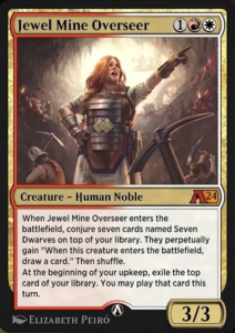 Some players are rather excited for Jewel Mine Overseer to pop up in the Boros Pia Nalaar, Consul of Revival decks over in Historic. Jewel Mine Overseer both provides some extra threats that cantrip upon entry and enables exile-based effects like Pia Nalaar by Impulse drawing at the beginning of your turn. While this card is definitely an interesting one to look at in Alchemy, I think it may be too slow for Historic.