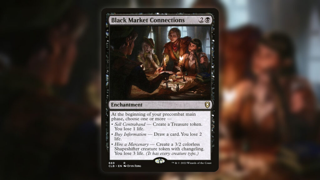 As for what decks we’ve seen thus far, only the four precons from Commander Legends: Battle for Baldur’s Gate have been spotted. While this isn’t the biggest selection, there’s still plenty of value and cards to be excited about. For example, Black Market Connections from the Party Time deck is worth $30 alone!
