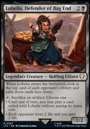Obviously, the artifact intended to sacrifice in context of the preconstructed deck this appears in is a Food token. That said, aside from needing an artifact to sacrifice, Lobelia needing to tap to activate her ability does slow things down a bit.