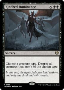 Tribal spells will now be referred to as Kindred spells! It’s already in several card names, and doesn’t sound as clunky and sterile as Typal. This minor change may grow on Magic players because it’s already a term that appears on cards that care about creature type synergies. Now, we all know that Kindred, essentially, can grant a noncreature spell a creature type, allowing it to synergize with some creature-type matters cards like Goblin Matron. Simple, elegant, perfect. Good job, Wizards.