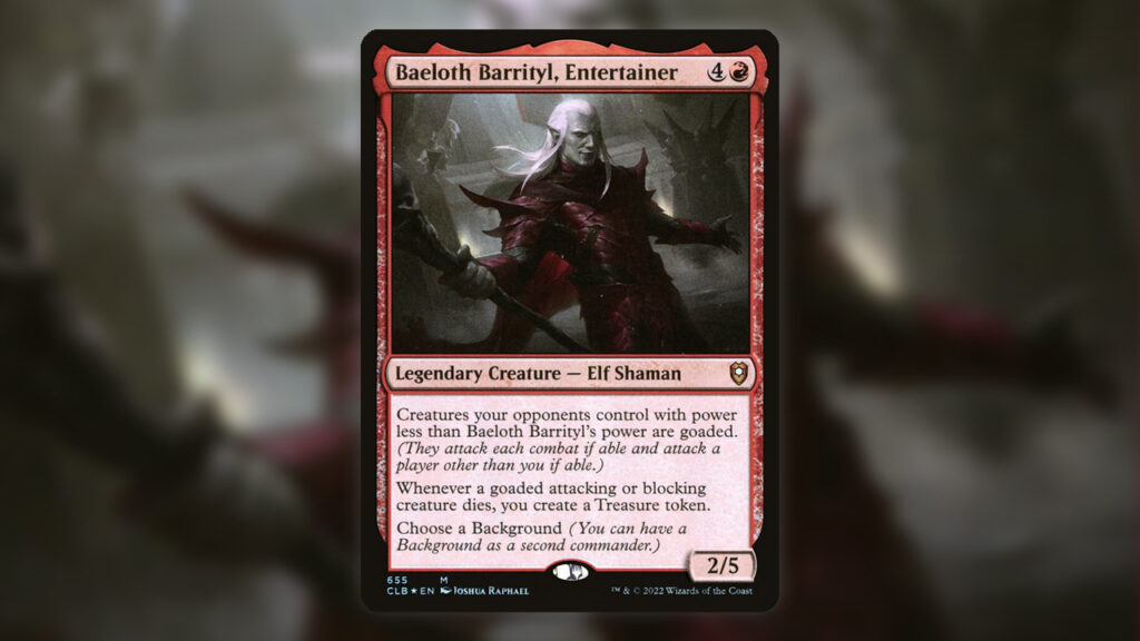 Oh boy, Baeloth Barrityl supercharges a few Commander strategies offered in Murders at Karlov Manor. the most obvious use of this Commander Legends: Battle for Baldur’s Gate card is to use it as an upgrade for the Blame Game Commander precon. That Commander deck is interested in continually profiting from your opponent’s Goaded creatures, and Baeloth Barrityl has a bizarrely powerful effect that will continually Goad any creatures that have less power than it. Of course, you’ll need ways to buff Baeloth Barrityl for this ability to truly shine, but the payoff is definitely worth it.