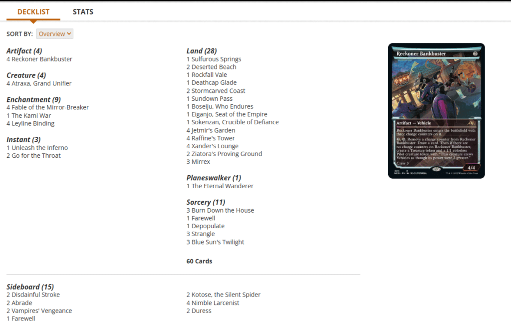Atraxa has been seeing major success in multiple formats, but Standard may be the one that sticks out the most. This five-color Midrange deck by MTGO user Gobern with four copies of Atraxa, Grand Unifier took down the Sunday challenge. Additionally, three more lists in the top nine had 3-4 copies of the card. While those seemed more focused on a reanimation package, the card has impacted the Standard format heavily in its early days.