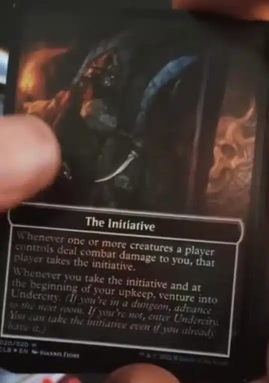 Next up we have “The Initiative”. In Dungeons & Dragons, rolling initiative dictates the order in which things take actions in combat. While the Magic adaptation is a bit different, it more so resembles a mechanic like the Monarch.