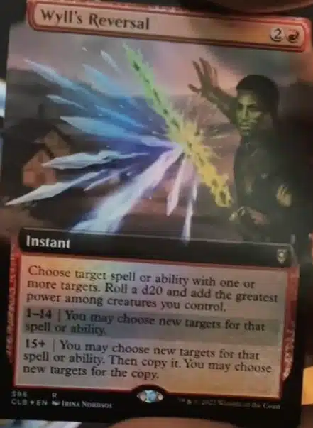 Another returning mechanic, this time one from Adventures in the Forgotten Realms, is Dice Rolling. This is a mechanic that is pretty synonymous with D&D, and so it only makes sense that it makes a return here. We have a couple of cards in the lot of leaks, and they’re pretty cool looking.