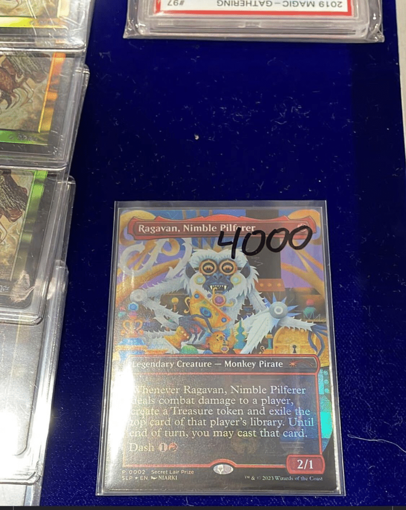 Interestingly, the new influx of highly collectible limited edition cards does not end here. The Secret Lair Showdown tournament was run alongside the Pro Tour event held during Magic Con Philadelphia. Instead of cash prizing, players competed for their shot at some scarce promotional cards. Those who managed to break the top 32 spots of this massive event were awarded with a Ragavan, Nimble Pilferer. As suggested by the picture above, it did not take long before these cards started going up for $4000 each.