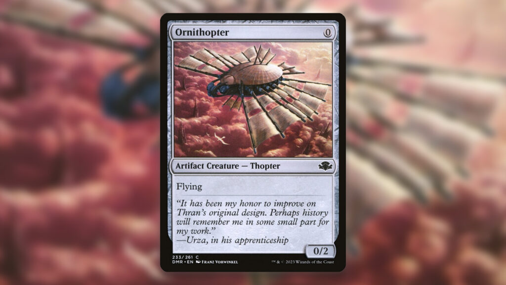This is why a playset of Ornithopter really is the glue that holds the deck together. Ornithopter doesn’t do much on its own. Luckily, it doesn’t have to. It’s easy to soar past ground blockers, put in one of your Ninjas before combat damage is dealt, and replay Ornithopter on the same turn. Ornithopter (along with any creatures you put into play via Ninjutsu) also has the added bonus of triggering Satoru, the Infiltrator when it enters.