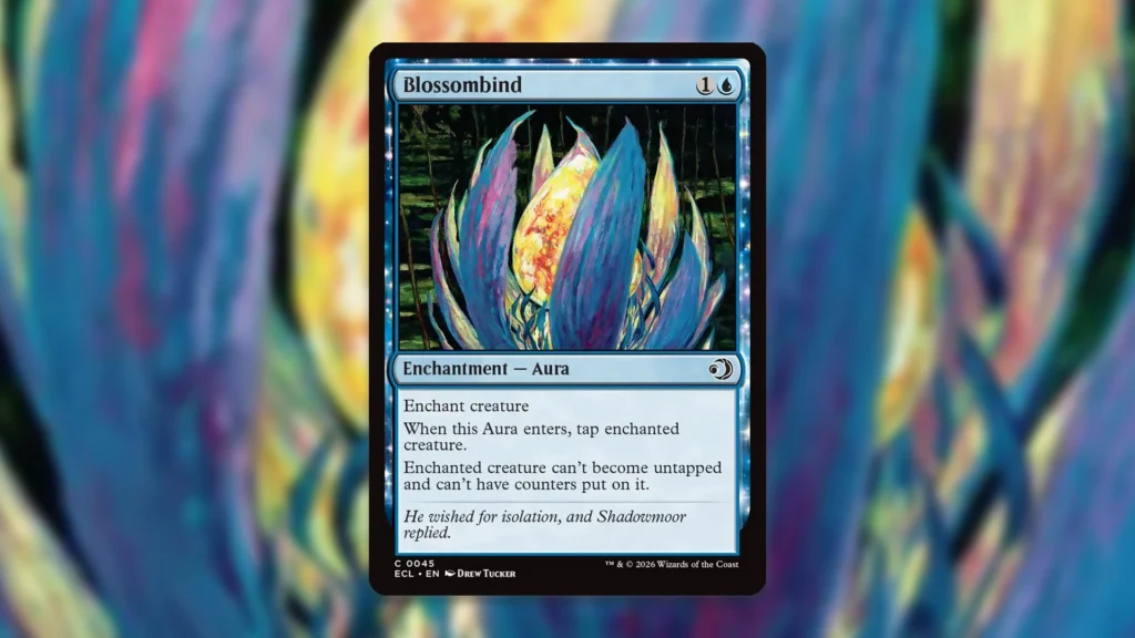 Blossombind is Lorwyn Eclipsed’s version of Claustrophobia. For two mana, you get a solid piece of removal that may look quite bland on the surface. Yet, there are two key parts to this card that make it a very interesting template for potential future mechanics.