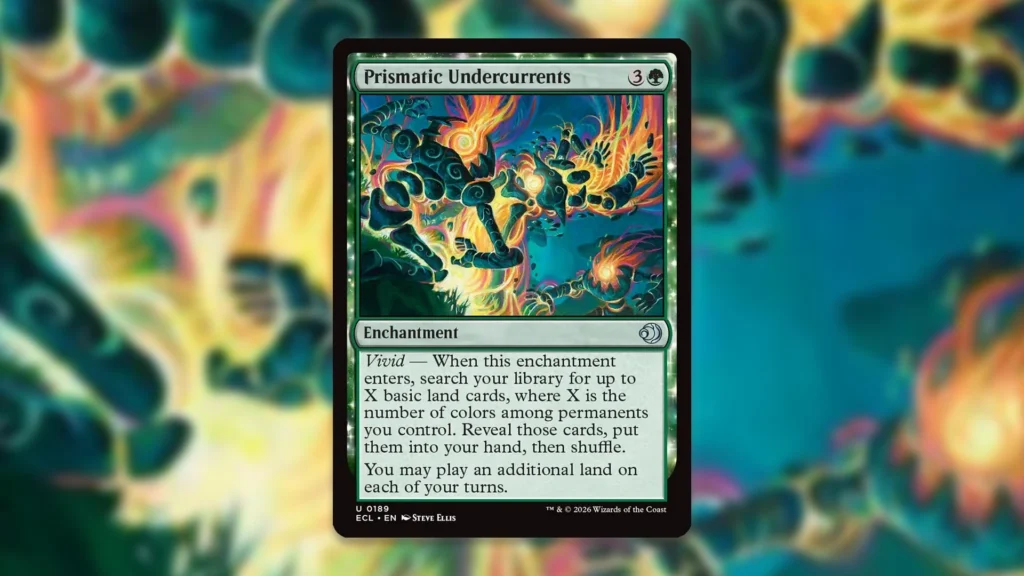 Despite being a simple uncommon, Prismatic Undercurrents also looks powerful enough to see a lot of EDH play following release. Lands decks can easily leverage Exploration effects, especially when partnered with Crucible of Worlds. Similarly, legends like Szarel, Genesis Shepherd, and Omnath, Locus of Rage are built to abuse these Prismatic Undercurrents.