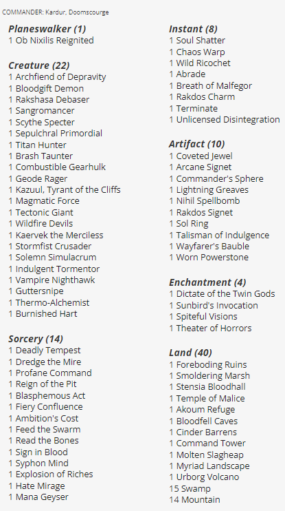 In terms of value, there is a two-way tie for third place. Chaos Incarnate has about a $58 value, which is still fantastic for these Commander decks’ $24 price tag. Chaos Incarnate is a Rakdos deck that cares about as it reads- creating as much chaos as possible! Kardur, Doomscourage is basically a Goad creature that Goads everything your opponents control on entry. This tried-and-true Rakdos strategy should give new players a good taste of what these colors offer!