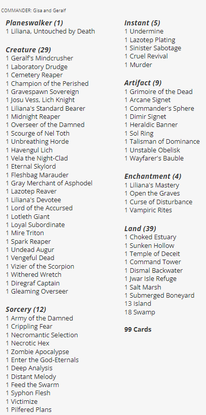 This deck cares a lot about Zombies. As such, while this is the worst value of the set, it is also one of the most upgradeable decks of the bunch. There are a LOT of powerful Zombie synergies in Dimir colors. As such, this is relatively easy to turn into a powerhouse with the right cards.