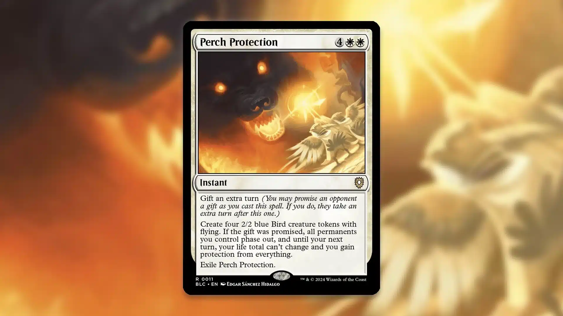 Outside of these types of decks, though, Perch Protection isn’t the most efficient effect. Creating four Bird tokens is nice, and obviously, using Perch Protection as a pseudo-Teferi’s Protection can swing games. That being said, paying six mana for four Bird tokens isn’t a great deal, and letting an opponent take an extra turn is a hefty cost to get all that this card has to offer.