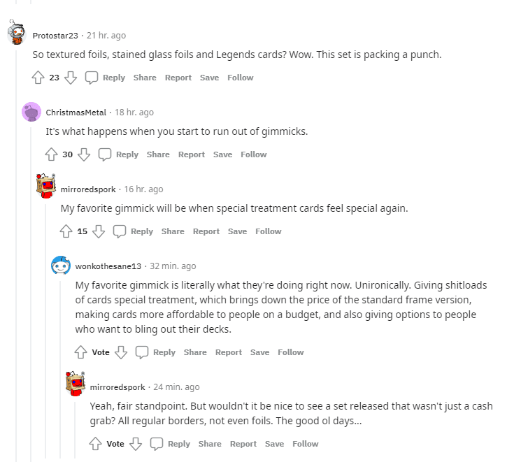 “Textured Foils are neat but they’re just ANOTHER set of cards to potentially collect. They feel less special over time. Stained Glass cards sound super sweet though!”