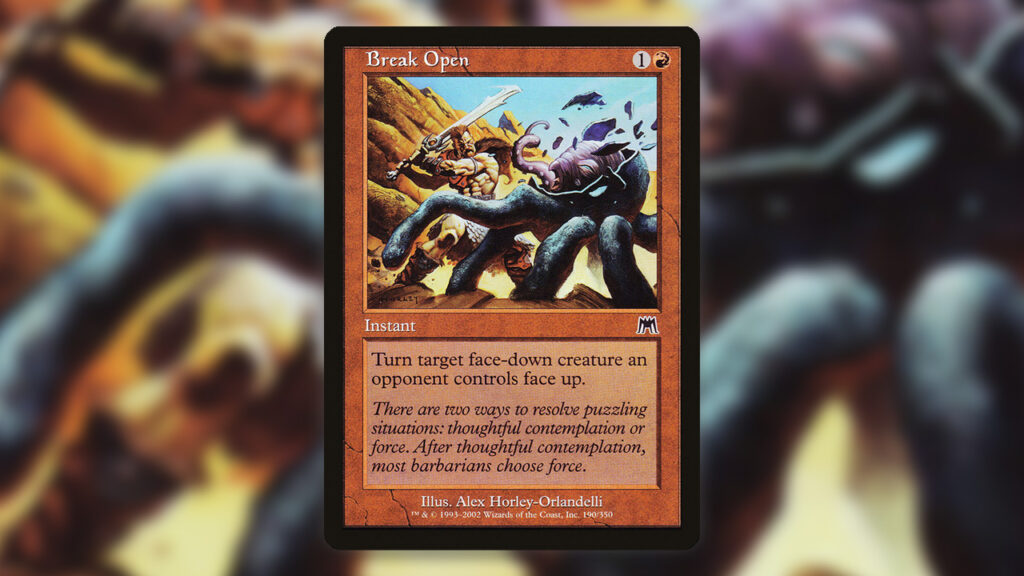 While it’s definitely exciting to see old mechanics revitalized and revamped for new Magic sets, there is sometimes a rush to incorporate anything old just because it’s somewhat relevant. There’s nothing wrong with experimenting with zany cards, but some of them simply do too little to ever be worth it. Break Open is a good example of such a card. It’s conditional to the extreme in terms of simply putting the card on the stack, but beyond that, you are giving an opponent a bonus a lot of the time. Sure there are some niche cases where you can use a face up effect from an opponent to further your ends, but it simply won’t happen enough to legitimize the inclusion.
