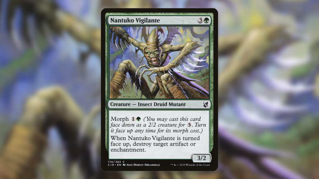 Green has options, almost as many as blue. Nantuko Vigilante is one of the most played cards in green with a face up, face down mechanic. A living Naturalize is pretty decent and you can play multiple copies if you include Ainok Survivalist. There’s also the Morph, or in this case Megamorph, version of Eternal Witness in Den Protector. Of course, Den Protector seeing play as a second copy of Eternal Witness, but now it has extra purpose when included.