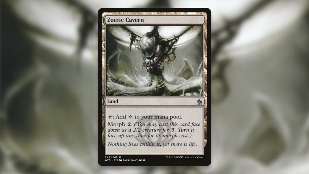 A very, very cool card, Zoetric Cavern is one of the best blockers in the game. As a colorless, typeless 2/2, it does not care about protection as just one example. Meanwhile, so long as the attacker does not have Trample, you can block and then Morph. End result? Creature blocked and you lose nothing. In fact, now you have a land that you can tap for one mana. It’s removal resistant for the same reason as any spell or wipe is almost certainly not going to ultimately affect a land. This card will be a free include in any decks where Morphing matters and it has enough upside to be useful every game.