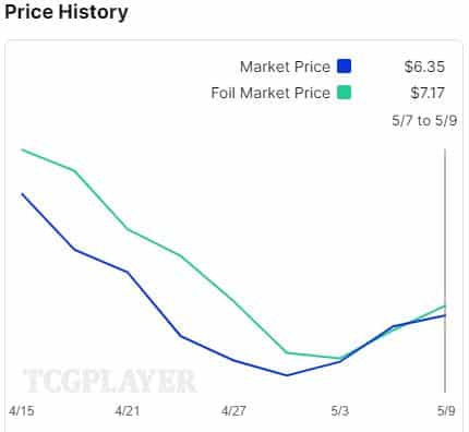 At the start of May, Raffine (regular art) was about $1.50. It rose to about $6.00 toward the end of last week. And over the weekend, Raffine, Scheming Seer, continued to rise in price and is now about $8.00.