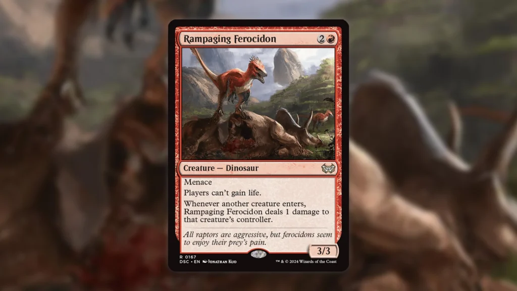 Of course, in most cases, the difference in text won’t matter. After all, getting a 4/4 is a beneficial trigger, so you’d need a pretty good reason for wanting to purposefully not create a token. Unsurprisingly, though, players brought up cards like Rampaging Ferocidon and Trespasser’s Curse that punish you for adding creatures to the board. These are corner-case scenarios, but they do come up, and the errata can therefore completely change how games play out.