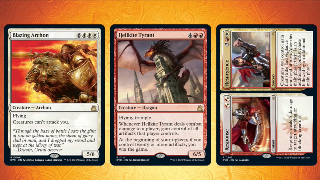 Blazing Archon and Hellkite Tyrant are both cards that should pique the interest of Commander players. Thanks to the absurd amount of artifacts in Commander, Hellkite Tyrant connecting with an opponent can easily take them out of the game. Even without the literal printed ability to win the game, the amount of advantage that one good attack can get you could be unsurmountable.