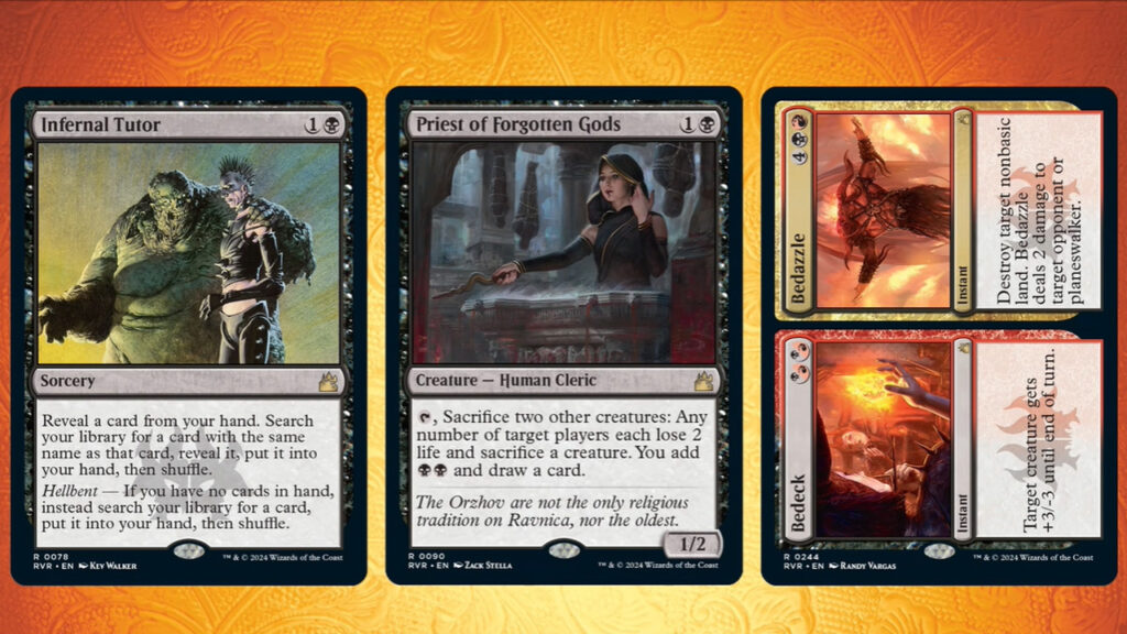 The Rakdos showcase reveals Infernal Tutor as a new reprint! This is an incredibly powerful tutor option when used alongside Lion’s Eye Diamond, making it rather popular in the Legacy format. Otherwise, the card sees fringe play in Commander.