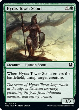 Hyrax Tower Scout is our second Corridor Monitor, but requires a mana dork, such as Llanowar Elves to make the combo happen. Additionally we can look to leverage a new instant, Storyweave, that helps us speed up the chapters of Fable.