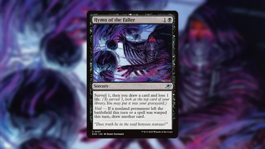 So, while Hymn of the Faller has plenty of Modern potential, how does it stack up in younger formats? Void is much more difficult to trigger in Standard, which could ruin Hymn’s potential there, but it does work in some new potential shells supported by Edge of Eternities, like Aristocrats.