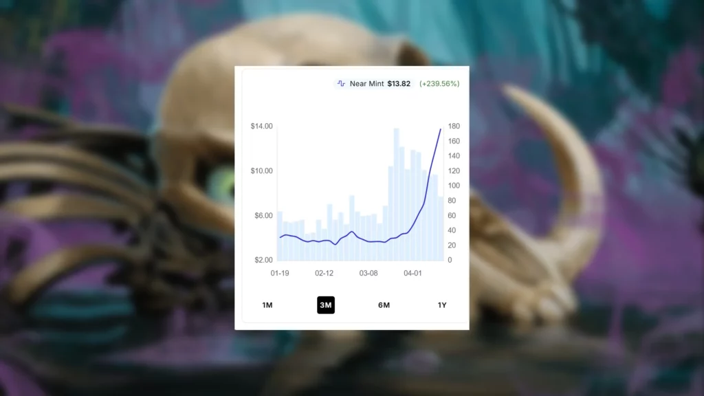 Despite this immense popularity, Ripples of Undeath only started spiking near the end of March. Spiking from $4 to $13.50, Ripples has experienced a 237.5% price spike so far. The card is still selling strong daily as of the writing of this article, so there’s a decent chance that this spike isn’t over yet. A majority of the currently available traditional variant Ripples of Undeath are over $20.