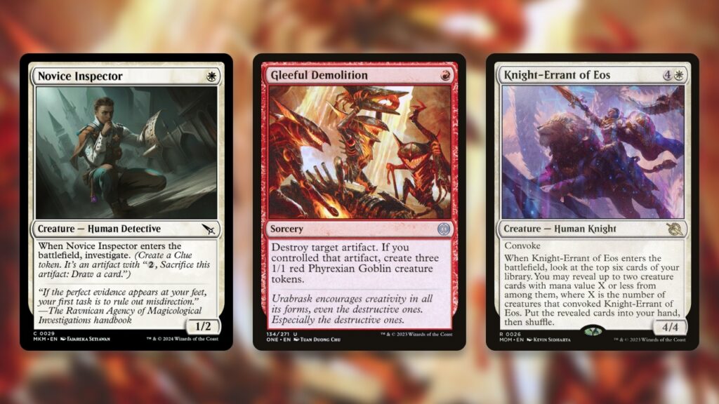 As I mentioned above, sacrificing creatures to bring out a Rottenmouth Viper won’t feel great. That said, it’ll feel significantly better if you tapped those creatures first to Convoke a Knight-Errant of Eos into play. That’s a play you can easily pull off around turn 3-4 in Boros Convoke, and it’ll likely set you up for the win. The deck already wants to run cards that generate multiple permanents on the cheap, like Novice Inspector and Gleeful Demolition, so including a powerhouse card that takes advantage of that seems like a no-brainer.