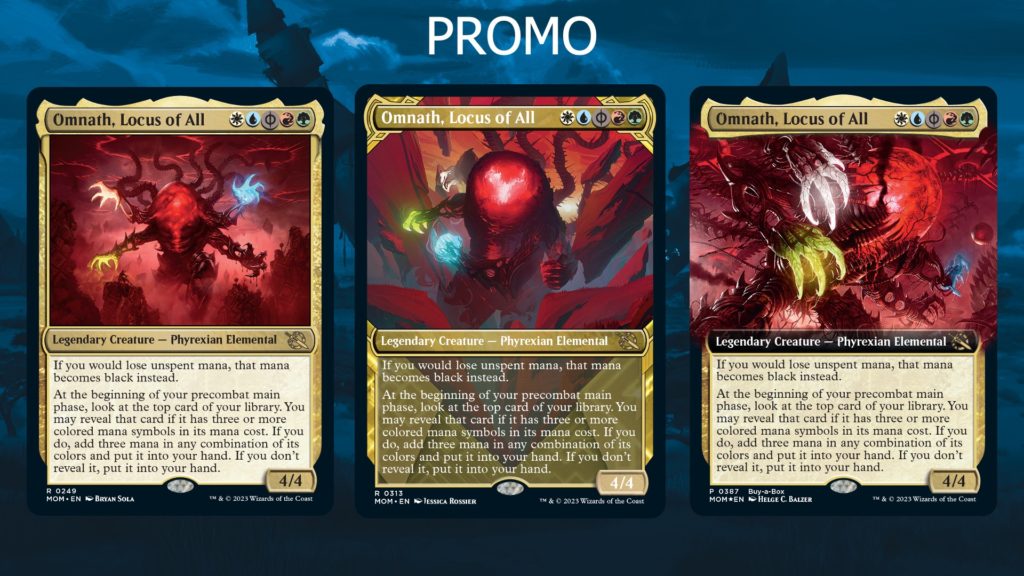 Omnath has become corrupted by Phyrexia and transformed into the horrifying Omnath, Locus of All. Costing one mana of each color, with the Black mana being Phyrexian, Omnath is a 4/4 with two powerful abilities…