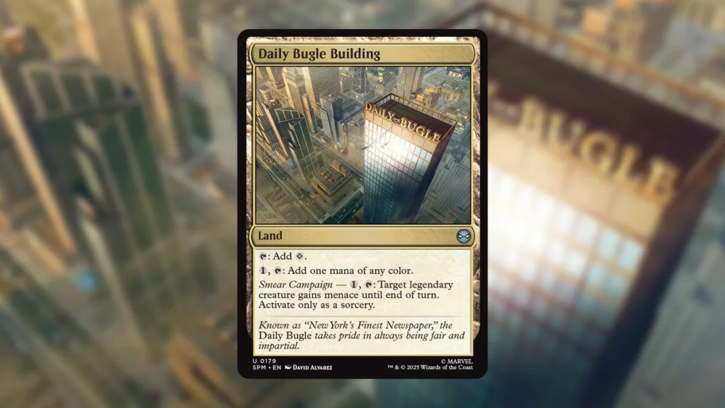 Daily Bugle Building certainly screams with flavor, especially when partnered with J. Jonah Jameson, but as a land, the card is just ok. The right Commander deck will want this, especially if they want to attack with their Commander, but this might be a bit of a stretch for constructed. Thanks to its expensive colored mana, Daily Bugle Building really only makes sense in decks that don’t have a lot of colors. You also need enough Legendary Creatures in the deck to get value out of Daily Bugle Building consistently. Menace is a powerful keyword in an aggressive deck, however.