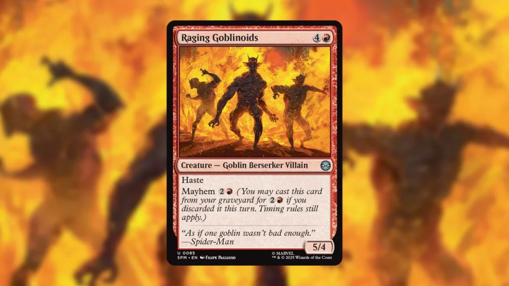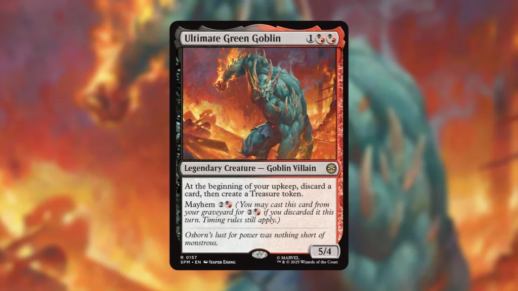 Notably, Ultimate Green Goblin pairs with other Mayhem cards exceptionally well. If there are some red Mayhem spells that can go face, Ultimate Green Goblin might be a new Mono-Red Standard addition. The downside of discarding a card might prove to be too much, but this creature is at least really interesting to play around with.