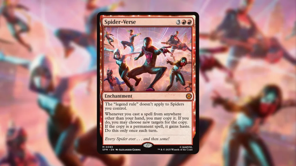 We’re nearing the end of the MTG Spider-Man spoiler season, but before the entire set is revealed, some new cards boasting crazy effects have hit the internet. These cards won’t be as interesting for competitive players, barring one, maybe, but the typical no-value enchantments that create massive value from a themed set of cards have appeared. Red has a new crazy Commander five-mana enchantment.