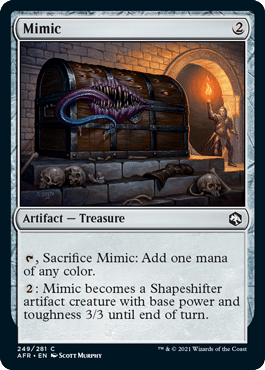 This set contains 281 regular cards and as a first, the basic lands of this set feature flavor texts. These are structured as descriptions presented by a Dungeon Master.
