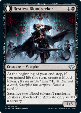 Innistrad: Crimson Vow is the 90th Magic: The Gathering expansion. It is expected to be released on November 19, 2021, and is paired up with Innistrad: Midnight Hunt that will release two months earlier. his set features the biggest vampire wedding in Innistrad history, a bonding between the Markov and Voldaren bloodlines. Crimson Vow will continue the new Innistrad storyline begun in Innistrad: Midnight Hunt.