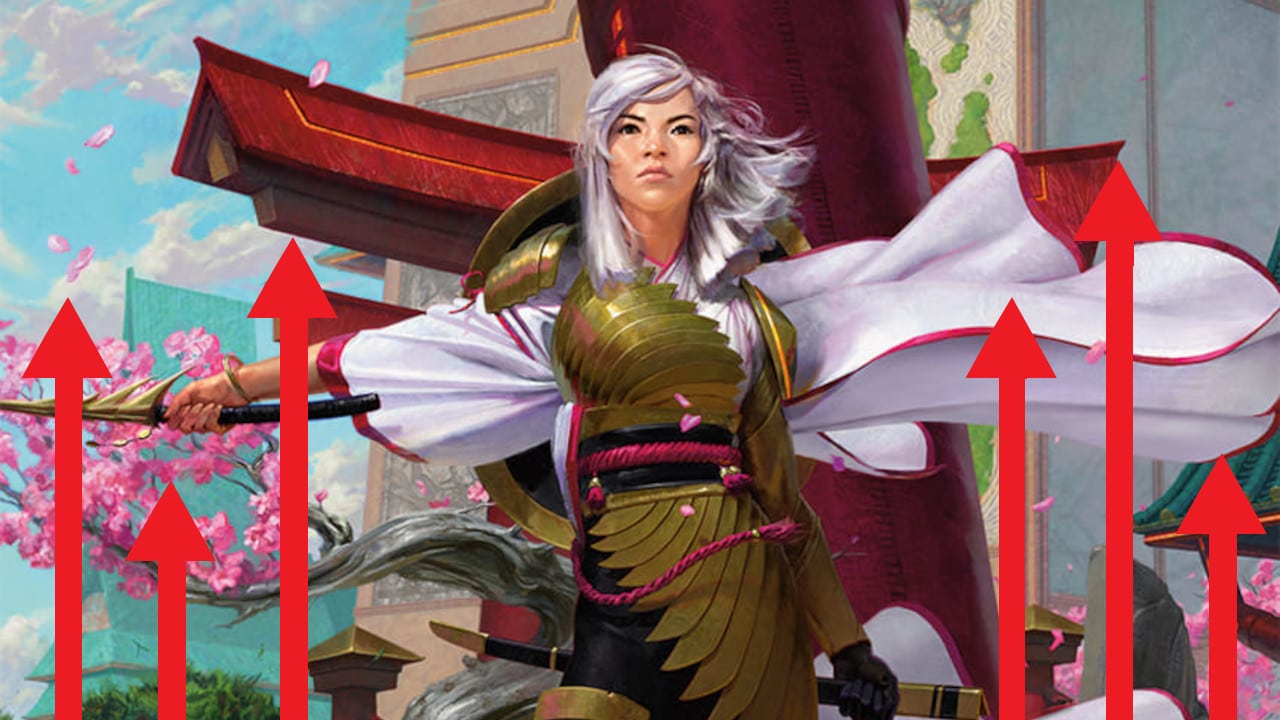 The regular art printing of The Wandering Emperor reached as low as $11.00 after the release of Kamigawa: Neon Dynasty. But as you can see in the graph below, the card is on the rise. This week it reached $15.00-$16.00.